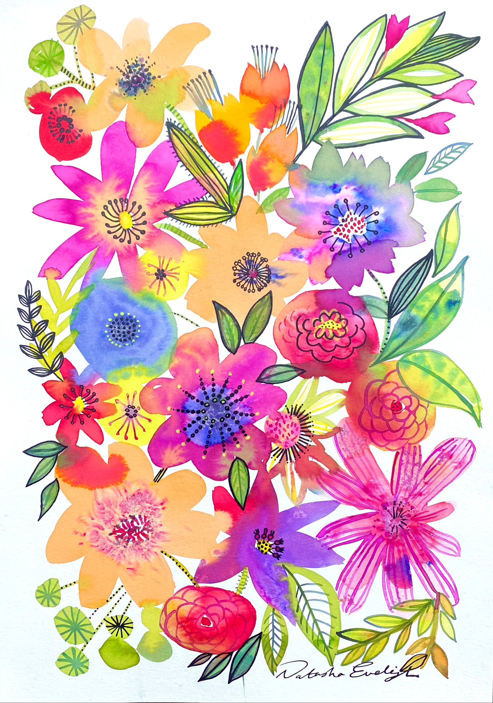A1 watercolour painting with bold, vivid blossoms--a blissful addition to the cheerful flower collection created to bring joy and radiance into your home!