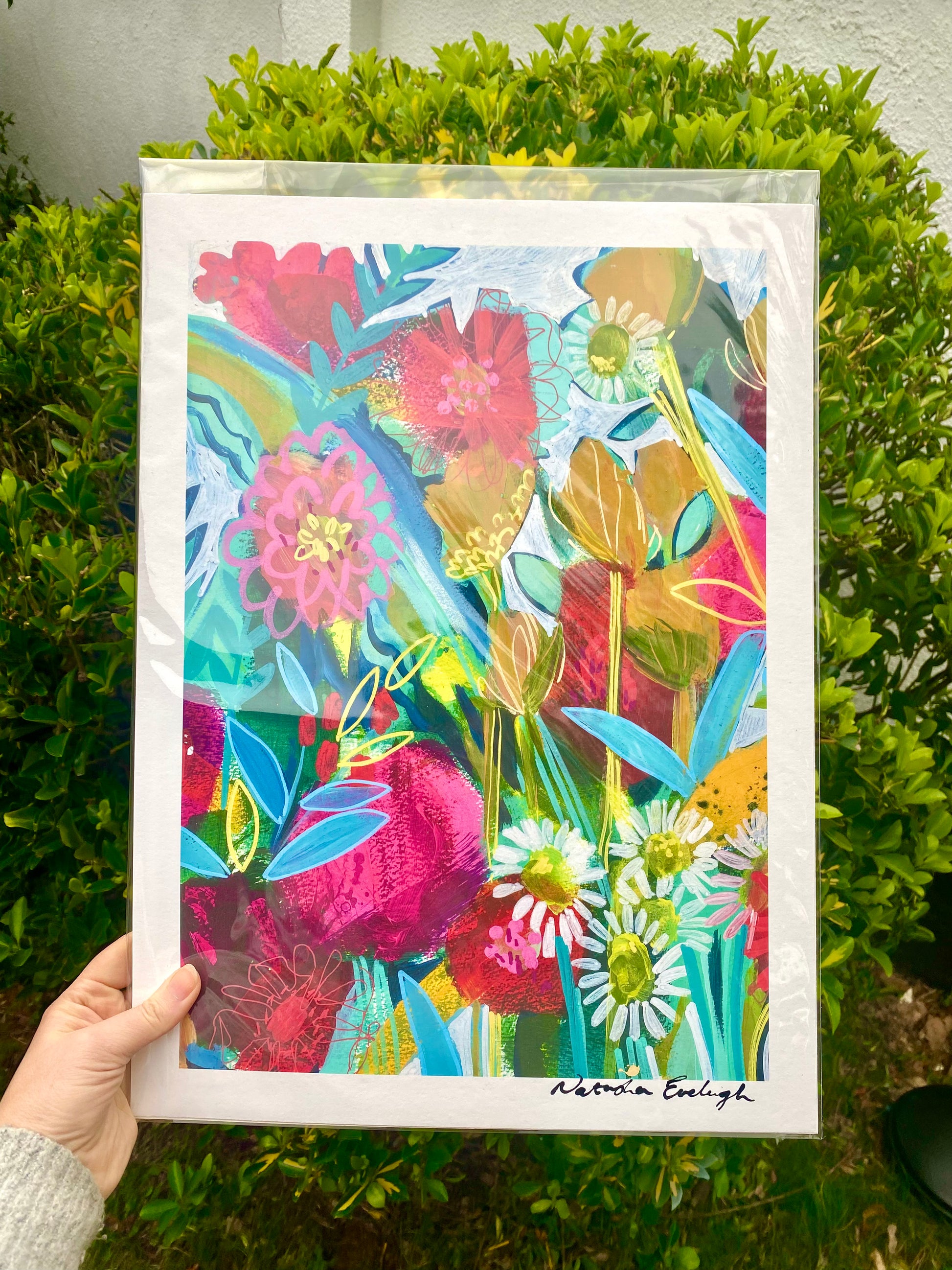 Each artwork is professionally printed onto Museum Heritage textured fine art 310gsm paper, known for its exceptional quality and luxurious feel. The colour match is incredible, faithfully echoing the original brushstrokes and textures of the piece.
