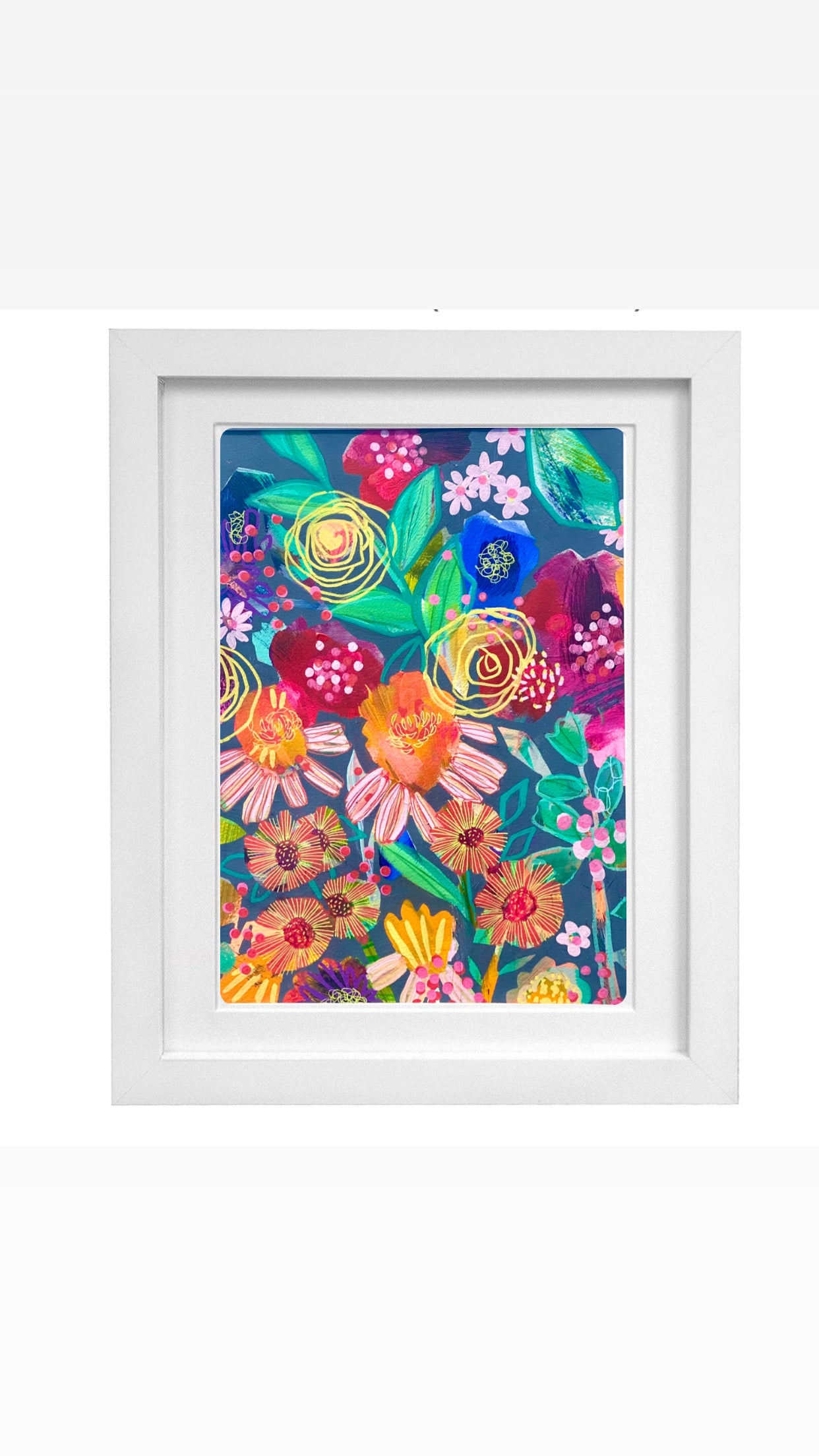 Brighten up your home with this one-of-a-kind Posy Party painting! This original acrylic work is painted on premium 300 dpi quality paper, and features abstract florals in fun, vibrant shades of grey, pink, green, and orange. Make a statement and express yourself with this gorgeous art piece!